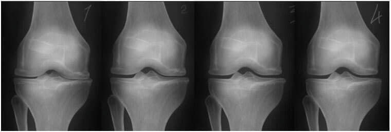 - Aşağıdaki röntgen, tipik bir diz eklemi iyileşmesi sürecini göstermektedir.